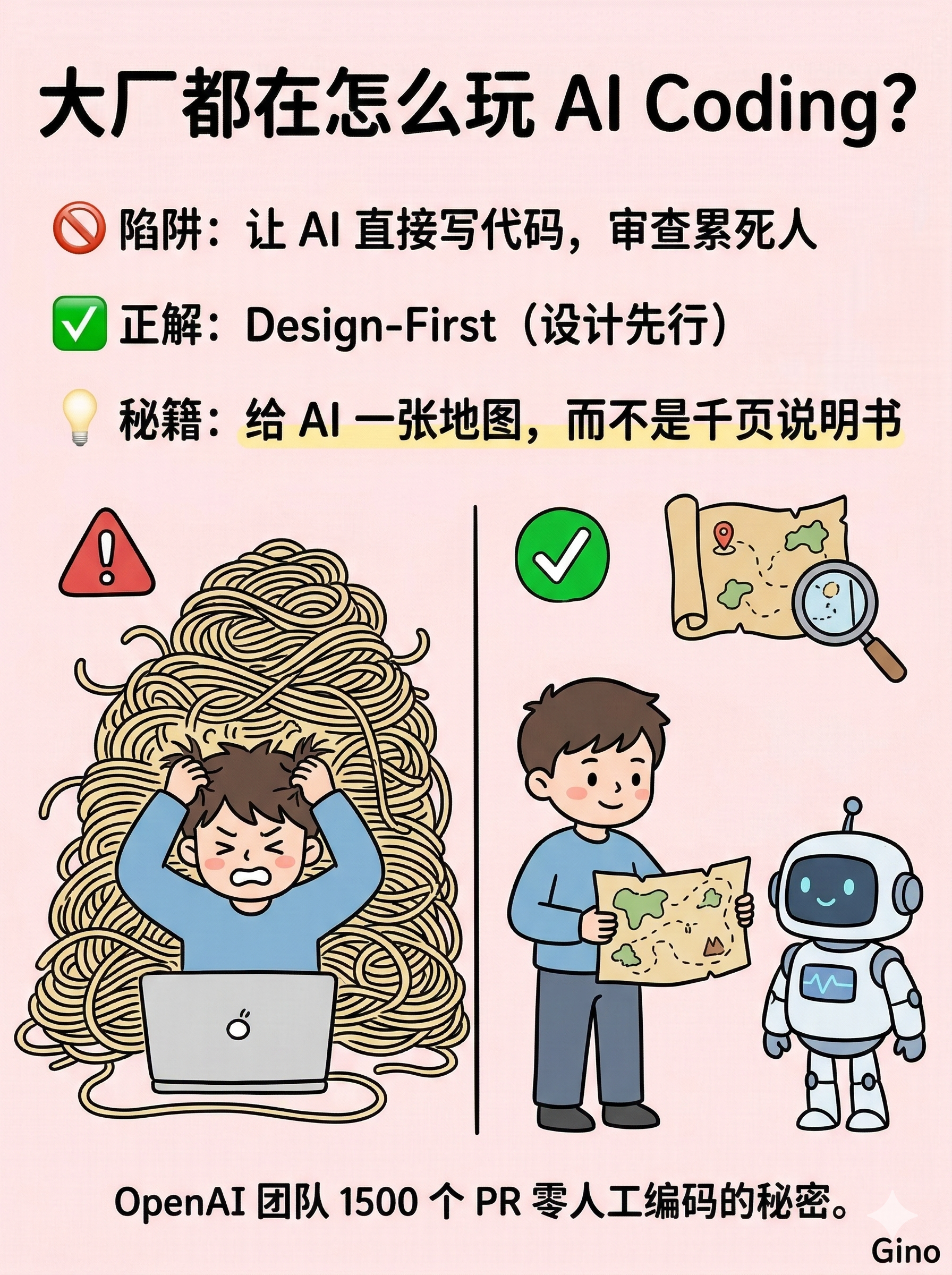 OpenAI 工程团队的 Codex 实践 印证了同一判断。5 个月内 1500 个 PR、零人工编码,规模化落地靠的不是更强的模型,而是结构化知识库管理、刚性架构约束和周期性的代码熵增清理。他们有一个很形象的说法:给 Codex 一张地图,而不是一本千页的使用手册。