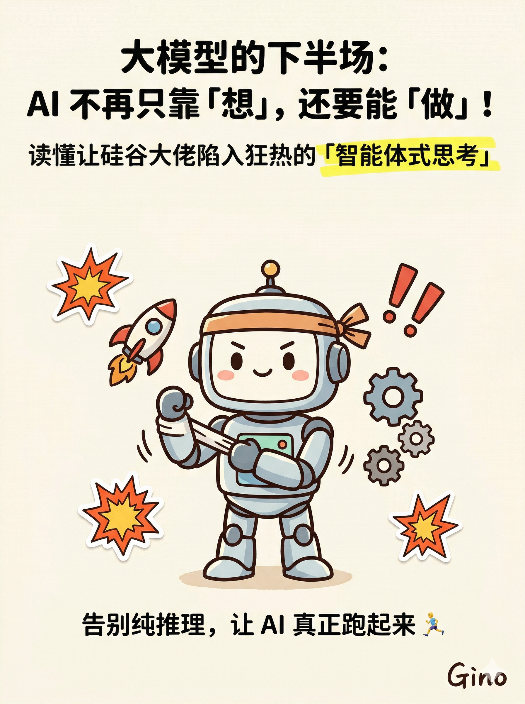 他回顾了过去两年推理模型的演进。OpenAI 的 o1 证明了思考本身可以成为模型的一等能力,DeepSeek-R1 证明了这种能力可以被复现和扩展。但 2025 年上半年,行业的注意力几乎全扑在 Reasoning Thinking(推理式思考)上,核心关注点是怎么让模型花更多算力去想,怎么用更强的奖励信号去训练。然后他抛出了一个关键判断:下半场比的是 Agentic Thinking(智能体式思考)。