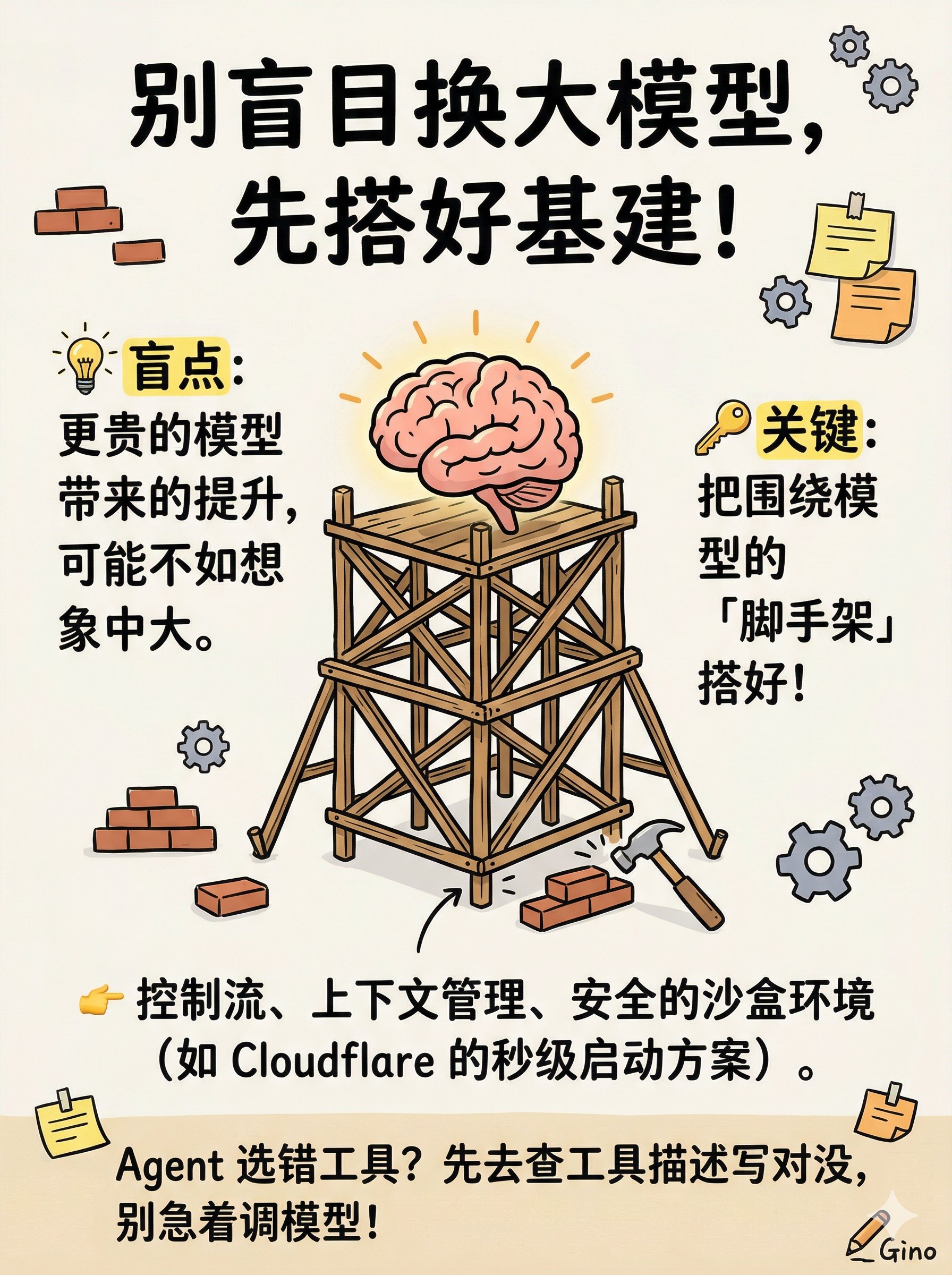 Tw93 的这篇长文从实践者的角度系统梳理了 Agent 架构的核心要素,涵盖控制流、上下文工程、工具设计、记忆、多 Agent 组织、评测和安全。他有一个判断让我印象深刻:更贵的模型带来的提升,很多时候没有想象中那么大,反而 Harness 和验证测试的质量对最终成功率的影响更大。换句话说,把围绕模型的「脚手架」搭好,往往比换一个更强的模型更有效。
