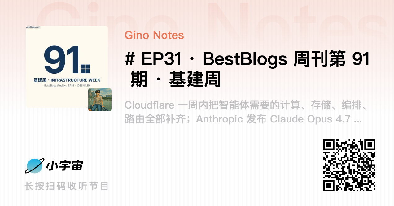 翻完第 91 期的二十篇精选,我发现过去三期周刊其实在讲同一条进化曲线。第 88 期是智能体式思考,第 89 期是智能体工程化,到这一期变成了基建周。思考、纪律、基建,一层一层往下沉。两个月之前我们还在追问谁的模型更强,这一期翻完只剩一个感觉,模型不是不重要,但今天更重要的是怎么把模型装进一台能被真正用起来的机器里。